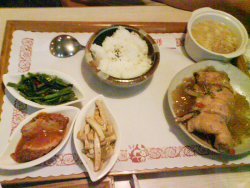 我們點了雞腿、牛排、九層塔炒蛋、高麗菜、2碗白飯共270元